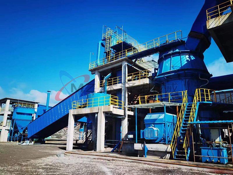 物料借助于重力和氣流的沖擊作用而落到磨盤中。磨盤牢固的與減速機(jī)相連,以恒速旋轉(zhuǎn)。磨盤的恒速旋轉(zhuǎn)將粉磨物料均勻的水平分布在磨盤的襯板上,液壓系統(tǒng)的強(qiáng)大壓力通過(guò)搖臂傳遞到磨輥,并由自動(dòng)控制系統(tǒng)保證磨輥能保持恒定壓力,斜錐式的磨輥結(jié)構(gòu)能夠咬住物料,在與磨盤相對(duì)運(yùn)動(dòng)的過(guò)程中將物料碾碎,并在碾壓與磨擦運(yùn)動(dòng)的共同作用下將物料碾成粉末。在離心力的作用下,被磨碎的粉料向磨盤邊緣甩出,與進(jìn)入磨機(jī)的高速熱氣流混合并進(jìn)行充分的熱交換,水份被迅速蒸發(fā),跟隨熱氣流上升的粉料水份已不超過(guò)百分之一,不斷進(jìn)入磨機(jī)中部的物料也在離心力的作用下不斷向磨輥 的碾壓軌跡區(qū)運(yùn)動(dòng)填補(bǔ)被甩出物料的空間,行成物料順序流動(dòng)。被高速氣流帶動(dòng)上升的粉料進(jìn)入分離 器進(jìn)行分選,分選出的合格粉料被送入收塵器回收入庫(kù),不合格的粉料被分離器轉(zhuǎn)子葉片甩出與外靜 葉片碰撞,使其動(dòng)能衰減,落回磨盤中進(jìn)行再粉磨。形成了粉磨過(guò)程的動(dòng)態(tài)循環(huán)作業(yè)。